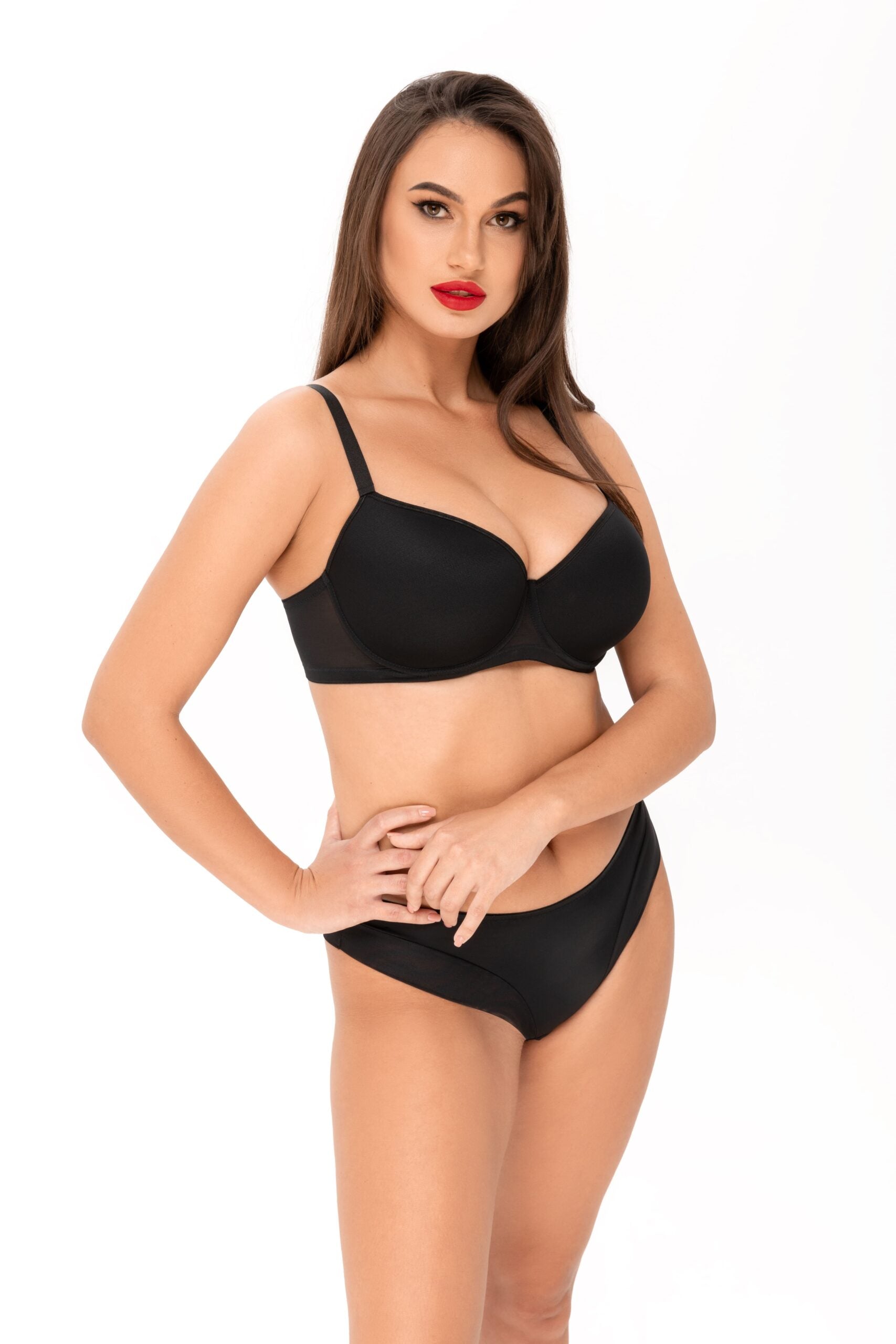 Comfortable balconette bra with molded cups made of mesh fabric on the cups, sides and underwire.