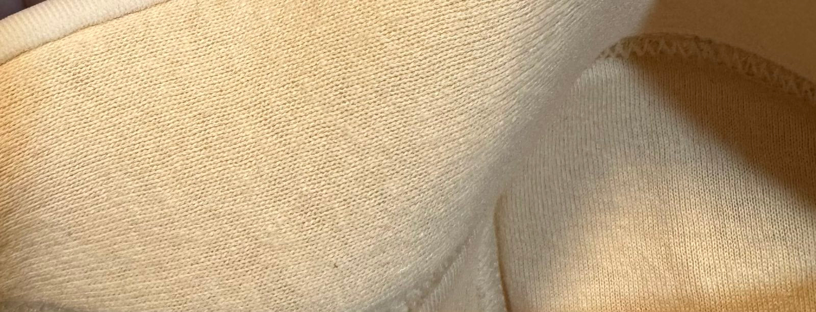 This bra is a combination of jacquard satin and smooth knit fabric of a natural color.